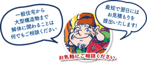解体に関するお困りごとは、いつでもお気軽にご相談下さい。